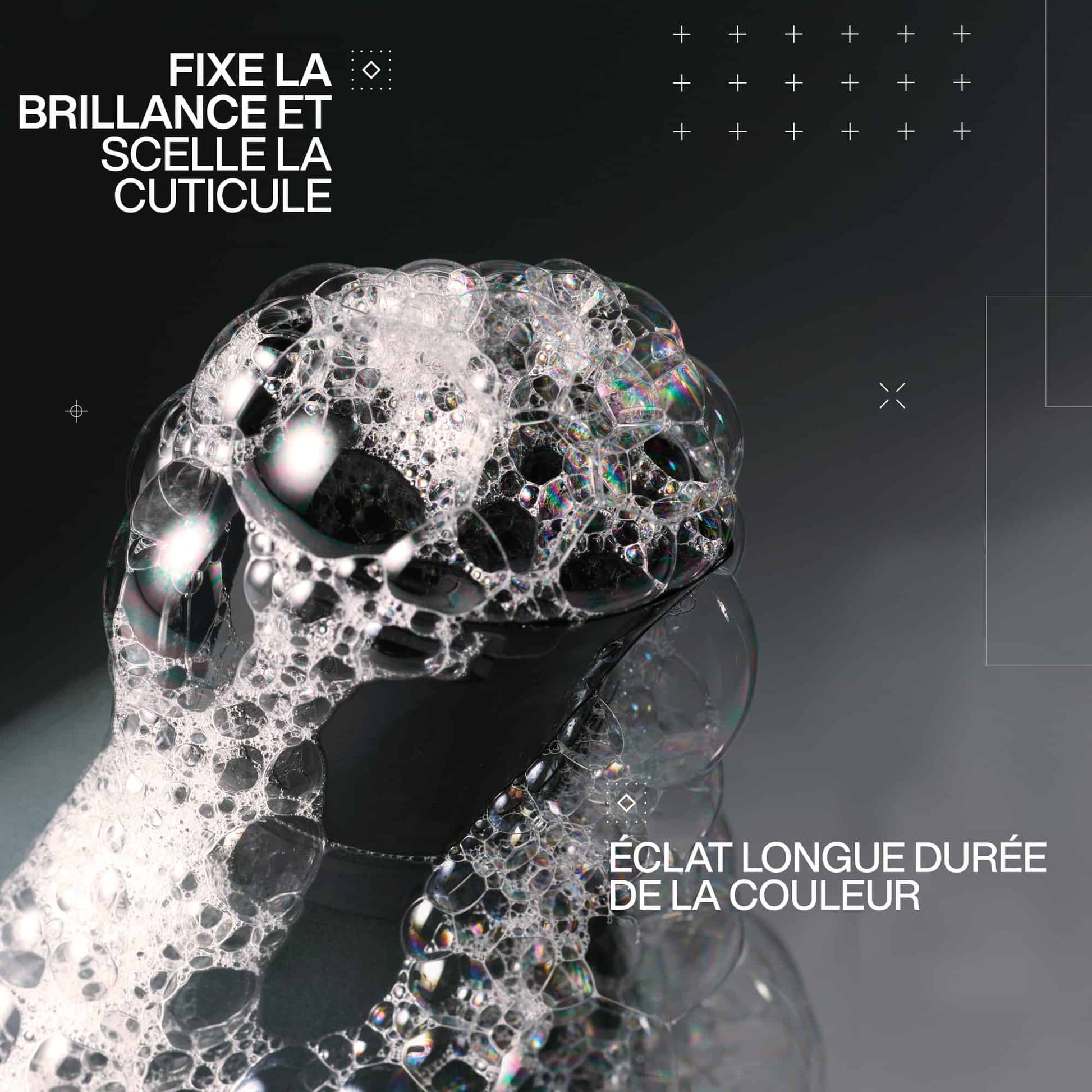 Utiliser comme routine de soins des cheveux complète avec le traitement Acidic Color Gloss Soin Gloss Brillance Professionnelle, l'après-shampoing et le traitement sans rinçage Thermoprotecteur.