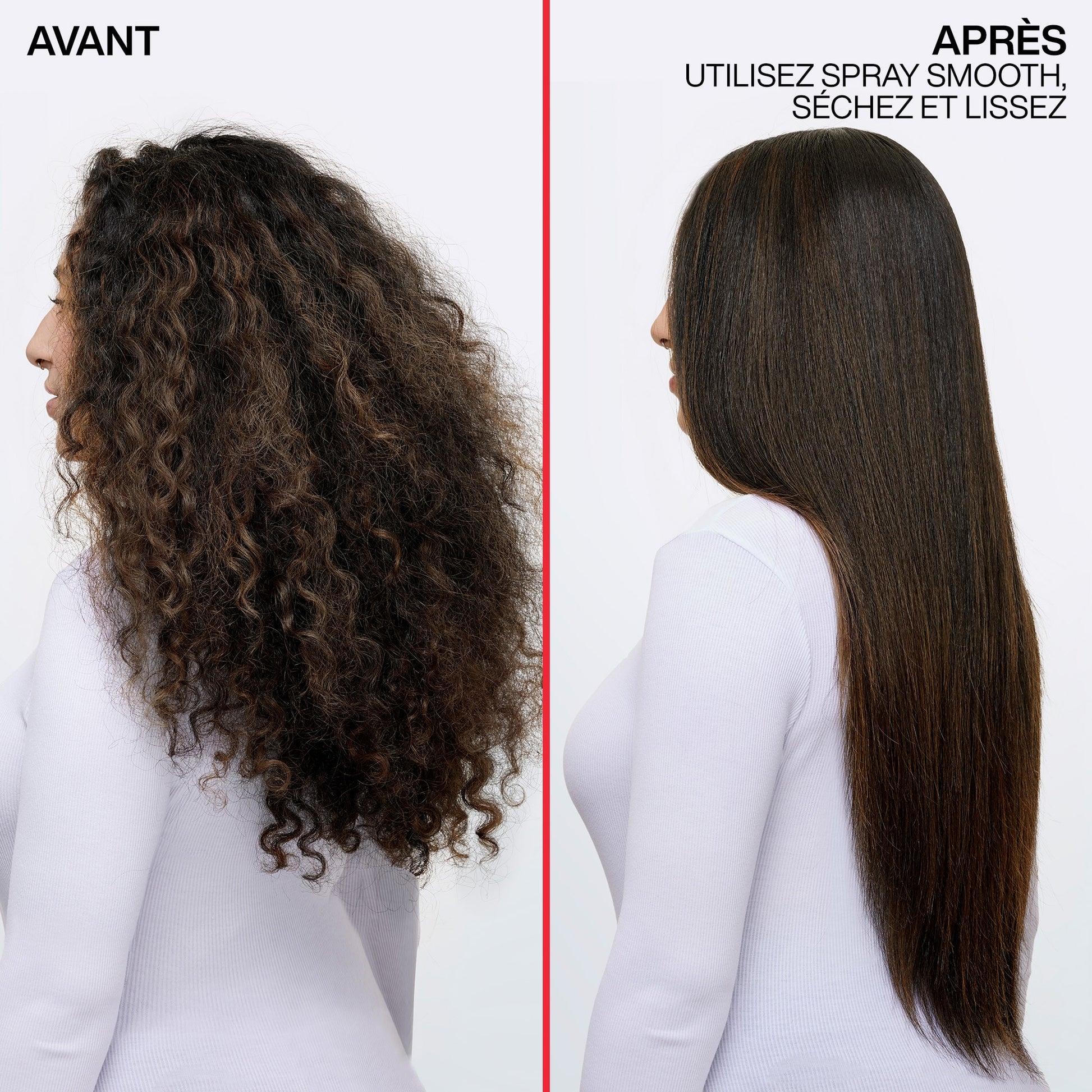 Le spray lissant Spray Smooth de Redken est un aérosol hybride qui offre à la fois des avantages en matière de coiffage et de soins pour lisser et défriser instantanément les cheveux. Cette formule ne contient pas de parabènes, de sulfates et de silicones et offre une protection contre la chaleur jusqu’à 450 °F/230 °C.